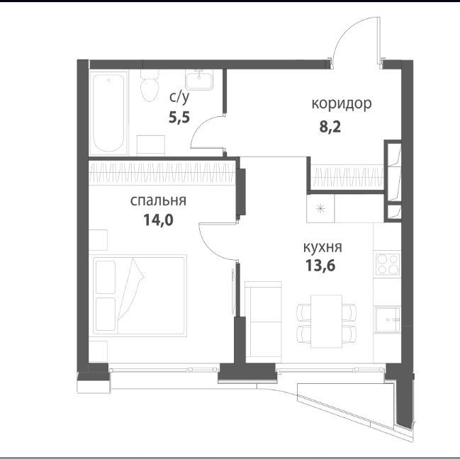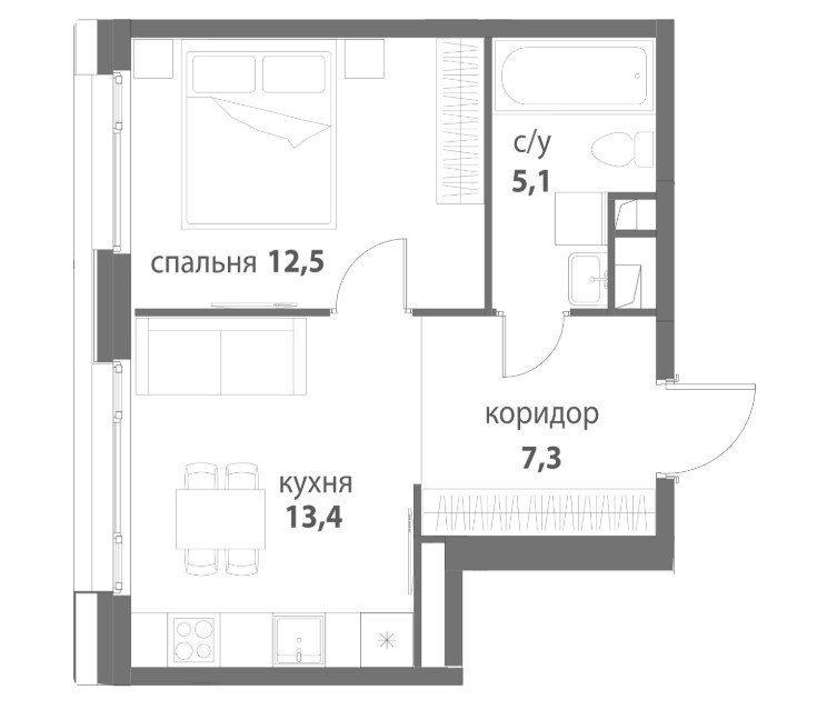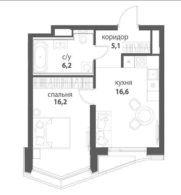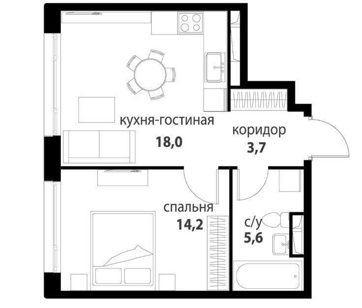 Площадь от 33.6 м2