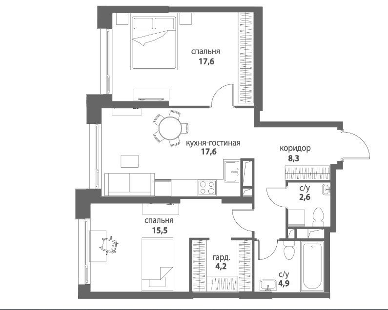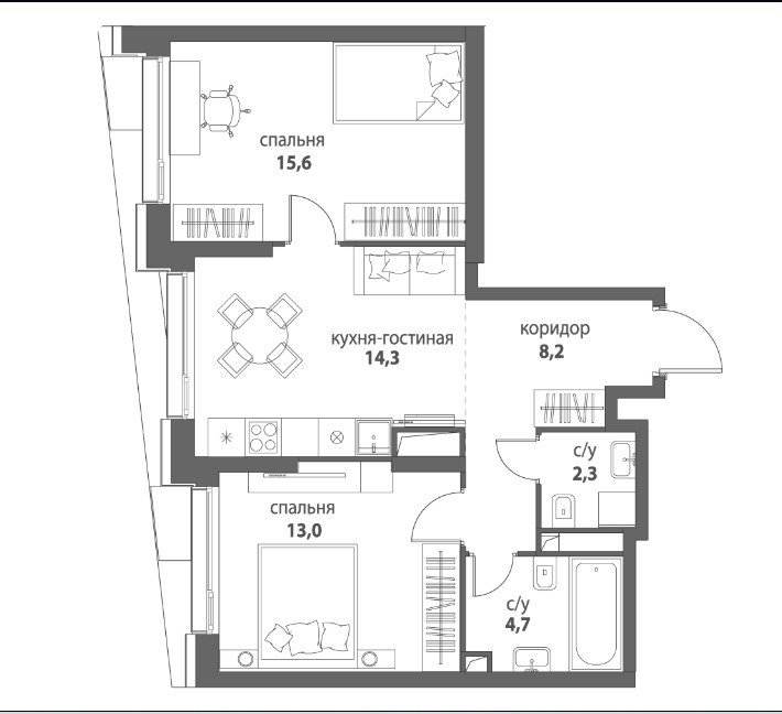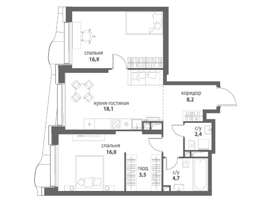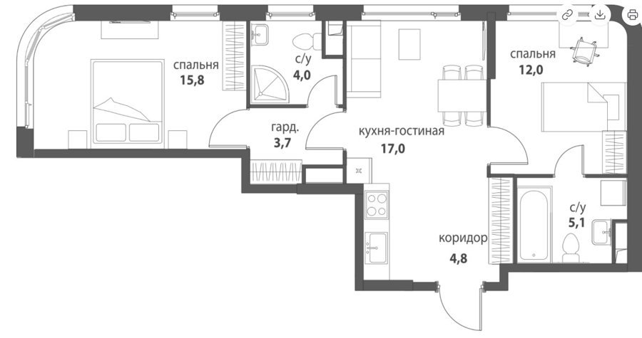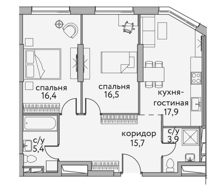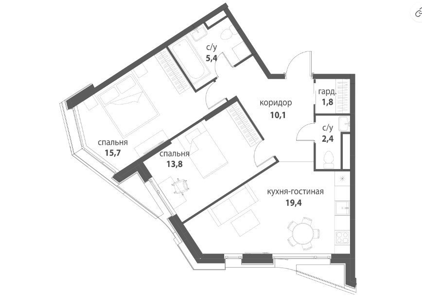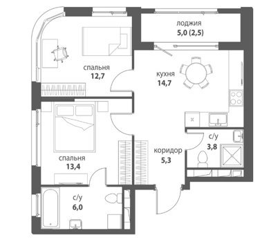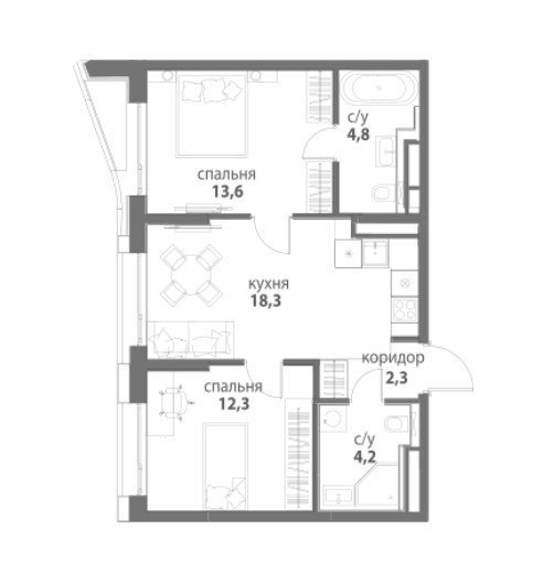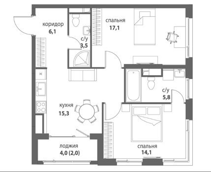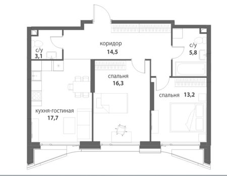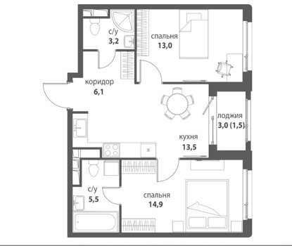 Площадь от 55.5 м2