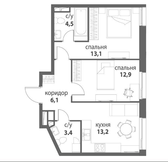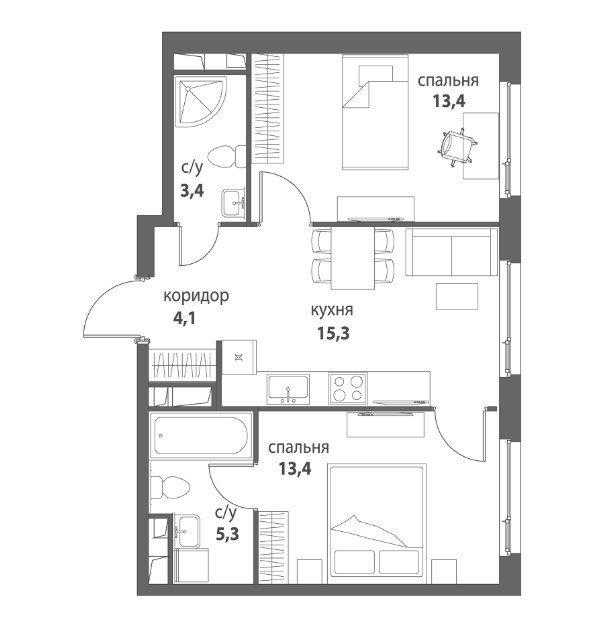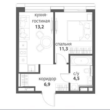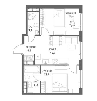 Площадь от 34.2 м2