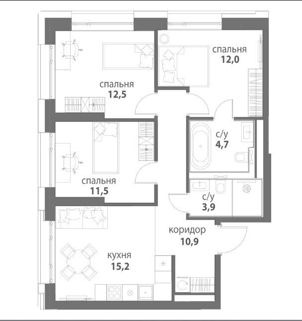 3к квартиры