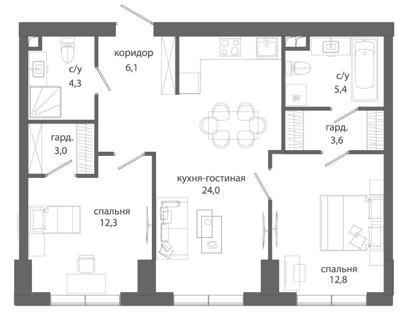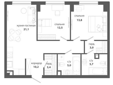 -Квартиры с окнами в ванной и возможностью установки камина для светлых и тёплых моментов вашей жизни.