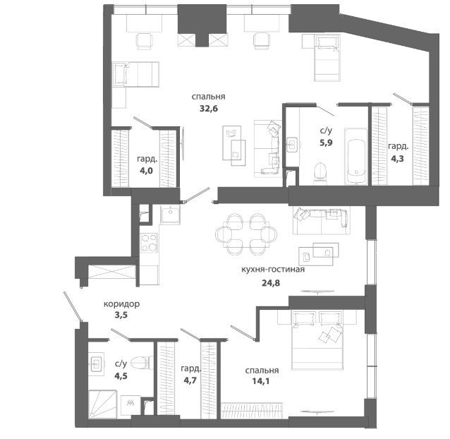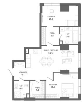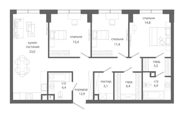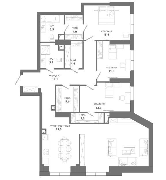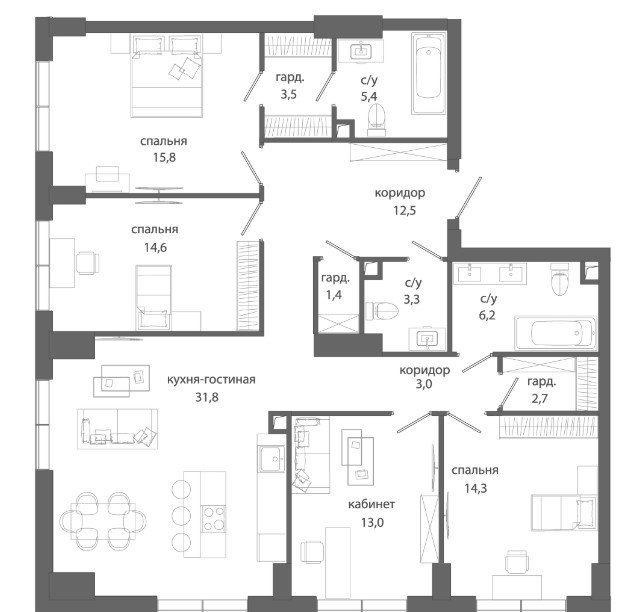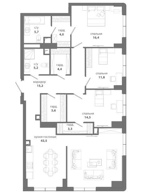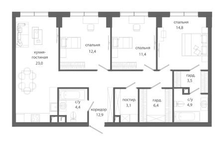 Площадь от 123.5 м2