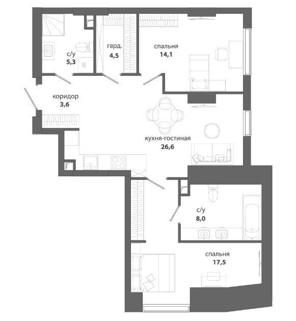 Площадь от 64.3 м2