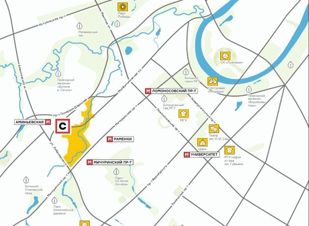 -8 мин пешком до ст. м. «Мичуринский проспект».