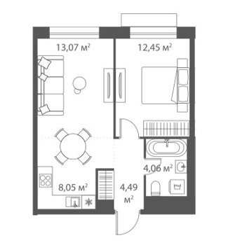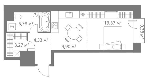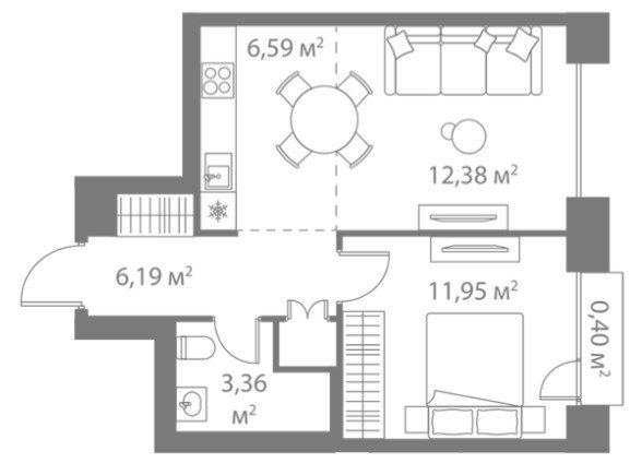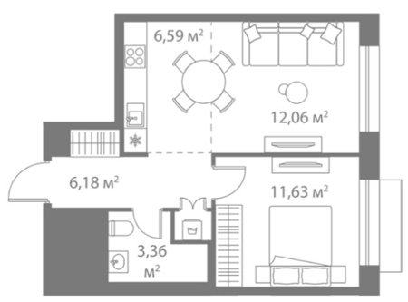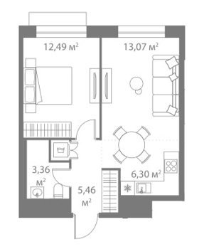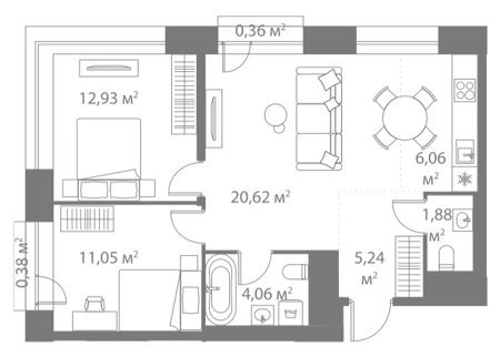 Площадь от 36.6 м2