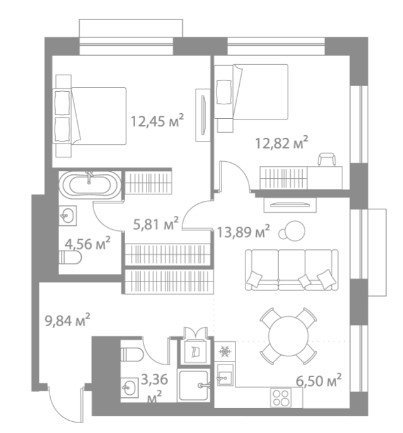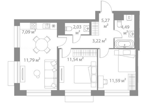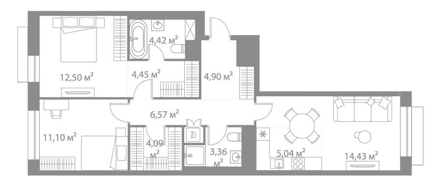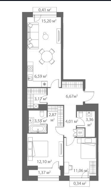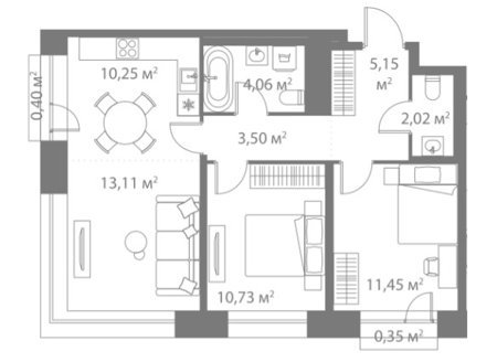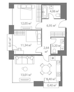 Площадь от 57.5 м2