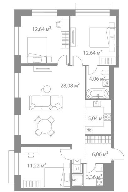 Площадь от 69.64 м2