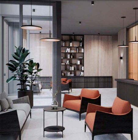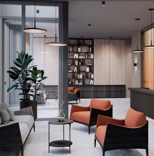 Лобби корпуса «Венеция» воплощает современные тенденции дизайна общественных пространств. Монохромные натуральные материалы в отделке, минималистичные светильники и аксессуары, контраст тёплого дерева и холодного камня, акцентная мебель, живые растения и книжные полки — этот лёгкий уютный интерьер с первого взгляда покоряет своей незаурядностью.