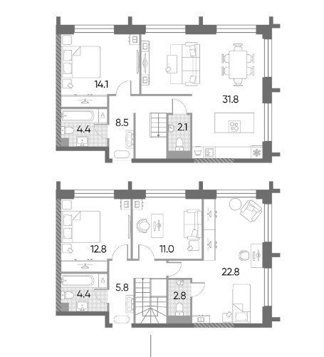 Архитектура каждого корпуса выполнена в индивидуальном стиле, разработанным девятью архитектурными бюро. Интерьеры входных групп соответствуют общим стилистическим решениям комплекса. В отделке применяются венецианская штукатурка, натуральный камень, дерево, мрамор, матовый керамогранит и графит.
