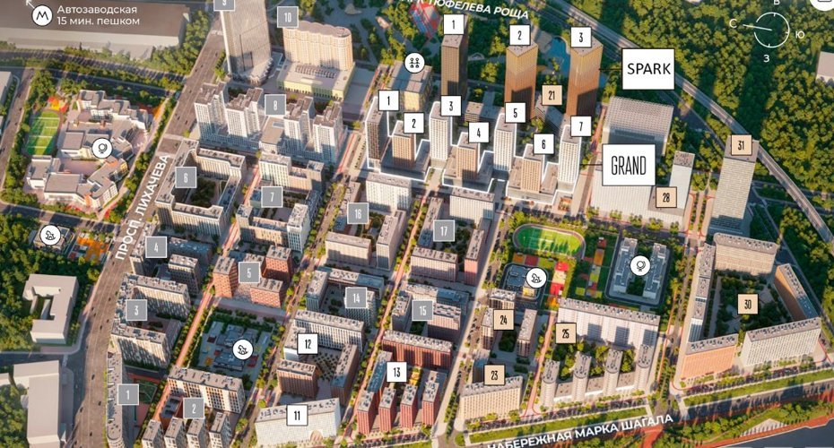 Уникальность территории определяется ее местоположением – всего 5 км до Кремля, на берегу Москвы-реки. Единовременное преобразование такой большой территории дает возможность создать по-настоящему новый район столицы – город в городе, где представлены различные функциональные зоны: жилая, деловая, рекреационная, досуговая и образовательная.