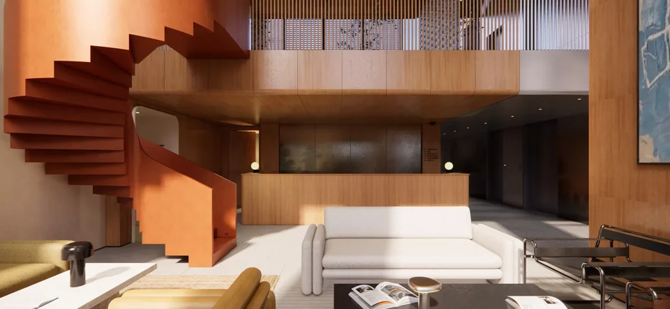 Проект представляет собой жилой квартал в едином визуальном стиле. Архитектурный облик зданий сочетает в себе современные элементы и связь с архитектурным наследием района. Комплекс состоит из 3 корпусов, каждый из которых облицован своим собственным оттенком: темно-серым, нежно-розовым и светло-серым. Во всех корпусах представлено дизайнерское лобби от бюро GAAG Studio.